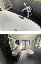 Zusätzlich verfügt die Wohnung im Obergeschoss über ein Bad mit Dusche und freistehender Badewanne, sowie über ein WB.