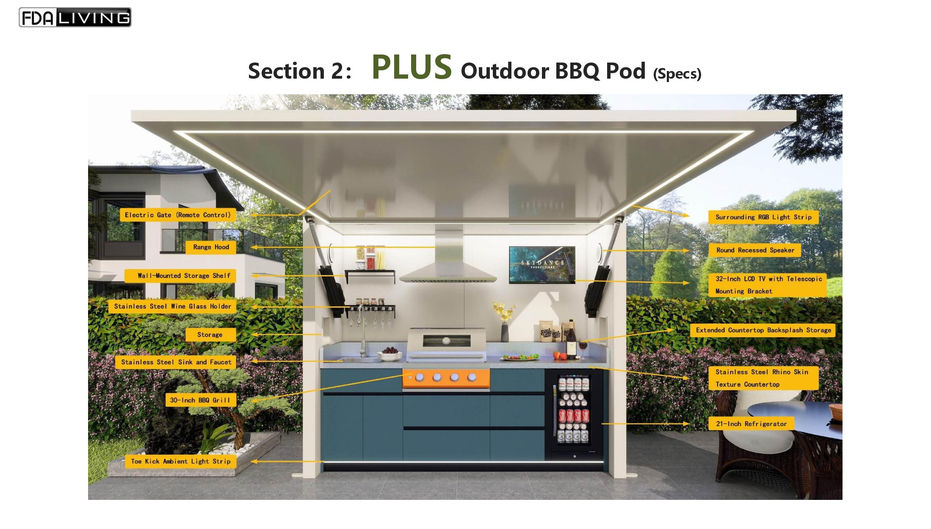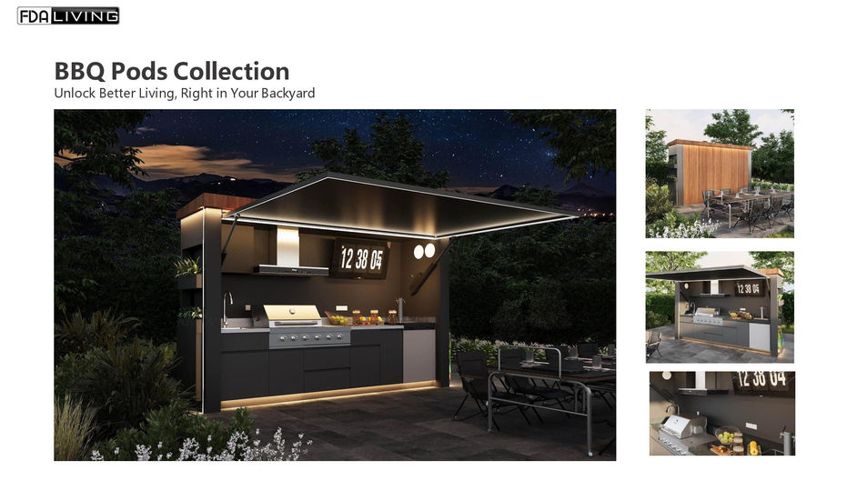 Discover the exciting world of our outdoor kitchen units! Here you'll find all the information you need about sizes and fantastic features that will make your outdoor cooking evenings a highlight. Each model is available with a practical hinged door or a stylish roll-up door – perfect for every taste! Design your dream garden and experience cooking in nature in a whole new way! Our kitchens are made of high-quality stainless steel and feature RGB lighting, a premium gas grill, a refrigerator, and much more. Connections for water, sewage, and 230V electricity are required. Download our catalog here and browse it comfortably at home.